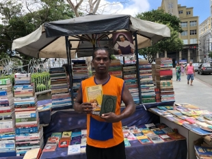 Lázaro da Silva Santos e seus livros de R$2,00 a R$25,00
